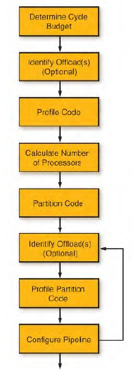 将前面所述的步骤组合在一起,就产生了图2中所示的设计流程。你可以先定义减负器(对于明显需要减负器的任务),或在配置好流水线之后再定义减负器(如果现有的代码使用了太多的处理器)。