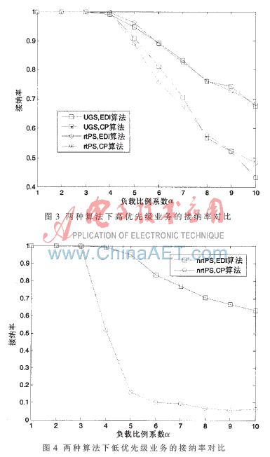 本文提出的算法可以根据系统负载的变化和当前的带宽资源状况自适应地改变接纳策略。相比典型的截止优先算法,新算法在提高系统平均带宽利用率的同时,大大提高了低优先级业务的接纳率,保障系统所接纳业务之间带宽分配的公平性,使得系统承载业务多样化。