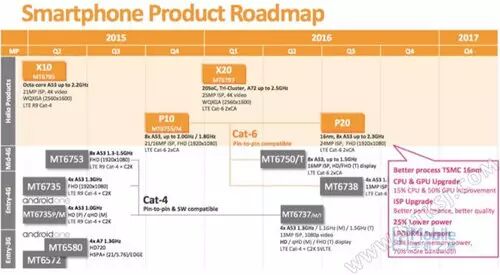 悉Helio X30采用了16nm FinFET工艺,与X20一样是十核心设计,但是架构却有所不同,Helio X30采用了更激进的四丛集处理器设计,第一组性能为4个A72核心,主频率为2.5GHz;第二组同样是Cortex-A72,数量为2颗,2GHz主