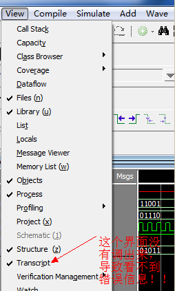 当这个节目调出来后,就能看到ModelSim错误信息了,如下: