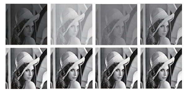 该图像共有4096个像素点,每个像素用3个比特表示,有0~7共8个灰度。原始图像的灰度分布情况从下表中可以看出,灰度的频率最小为0.02,最大为0.25。显然,直方图呈非均匀分布。