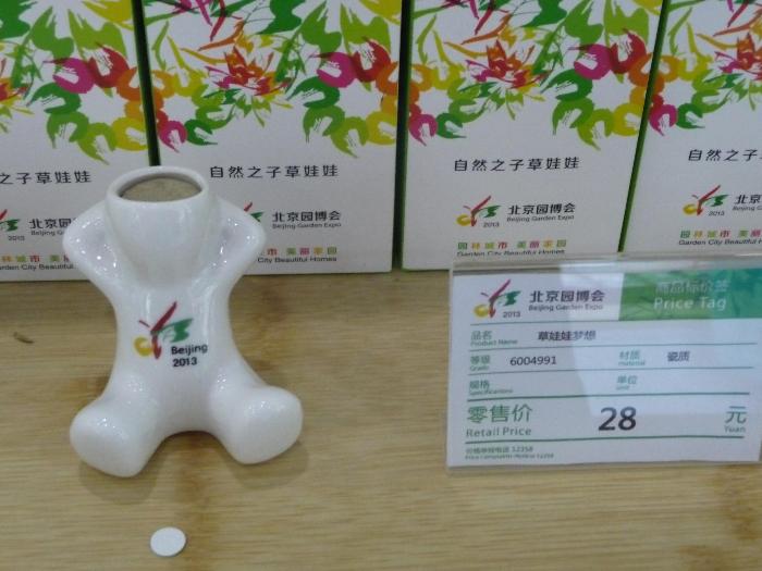 2013年,帝都北京在永定河边上把一个大型垃圾填埋场搞成了大型游园会——如果您也知道这事,那一定知道说的是园博会。去的时候看到这么一个小花盆,挺有意思,这个的操作是:种花的时候先要让它脑袋进水,等到种出来之后脑袋长草……