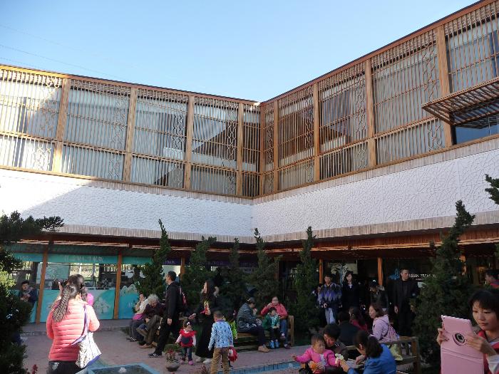 人是相当的多,到处都是,所以当转悠累了的时候,找个地方坐是有相当难度的。不过经过一阵转悠,在伊朗馆里还是找到了一个大板凳。身处这充满异域风情的小院,嚼着零食,沉浸在伊斯兰风格的音乐里,很是舒坦。