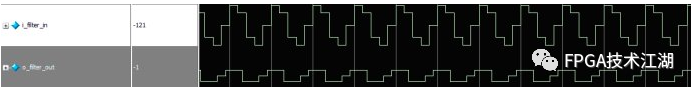 仿真的波形如下图(fir滤波器的输入输出信号):