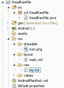 InputStreamin = this.getResources().openRawResource(R.raw.my);