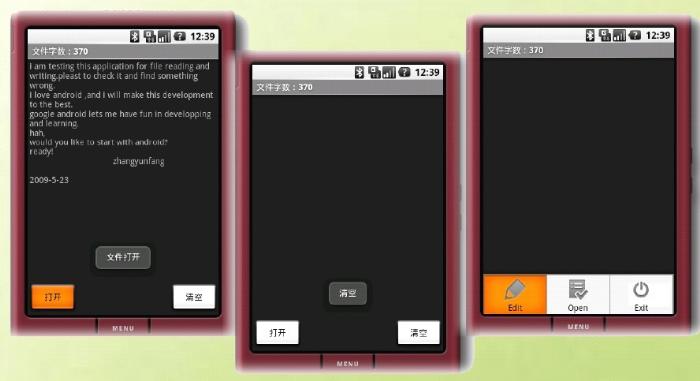 ③ 在res/layout 中新建一个open.xml 布局文件,添加一个TextView、两个Button("打开","清空")