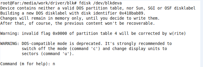 4、#sudo fdisk /dev/blkdeva
