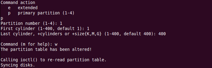 选择w,保存分区信息