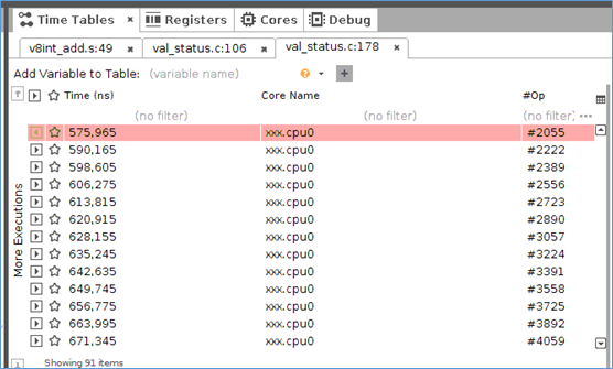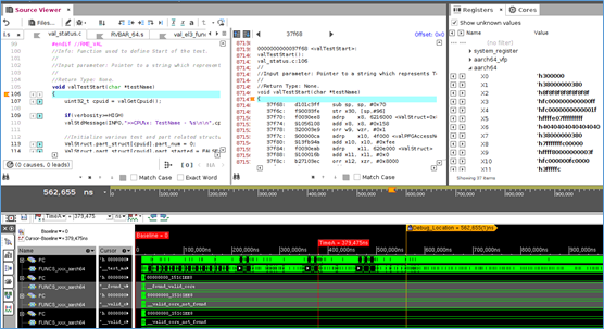 在波形窗口,能够看到各个core的执行pc,以及该pc,所在的函数。