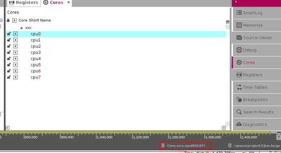 eswd工具,支持多个core,可以分别查看每个core的执行过程,在状态窗口的状态栏,会显示,当前查看的是哪一个core,以及该core的EL。