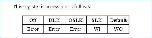 从上图可以看出,大多数寄存器当OFF,DLK,OSLK下,是不能访问的,因此有Error,这里的Error体现在APB访问时,APB总线上的PSLVERR信号会拉高,表示访问出现error。