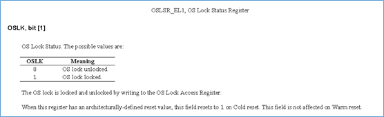 对于OSLK,用来禁止外部的debugger对一些ED寄存器的访问。由OSLSR_EL1寄存器来决定当前的os lock的状态。