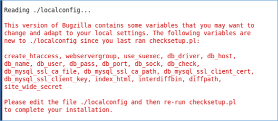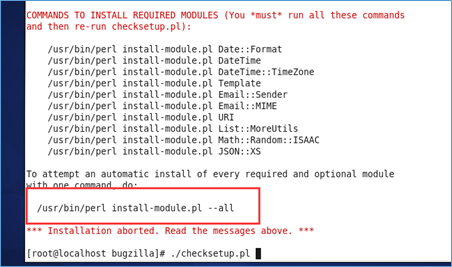 安装完毕后,再执行 ./checksetup.pl,出现如下提示: