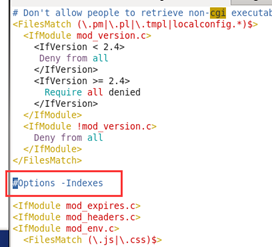 <Directory /var/www/html/bugzilla> AddHandler cgi-script .cgi Options +Indexes +ExecCGI DirectoryIndex index.cgi AllowOverride Limit FileInfo Indexes </Directory> |