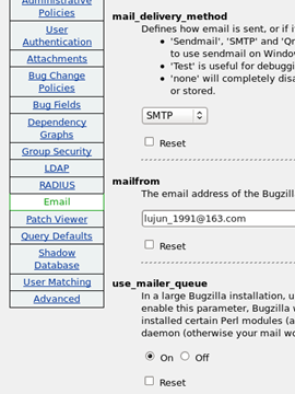 - mailfrom: 填入自己的邮箱,这个邮箱作为将来bugzilla系统,发邮件使用