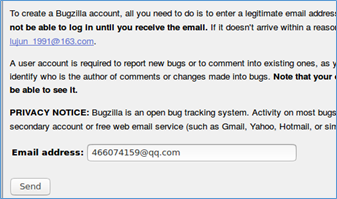 在局域网其他主机上,登录bugzilla。选择open a new account。