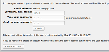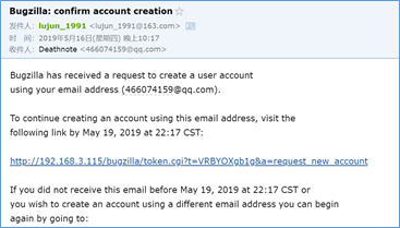 过一会,就收到了bugzilla发送的邮件,点击该链接,注册账号。