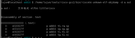 使用 riscv64-unknow-elf-objdump -d a.out, 查看反汇编: