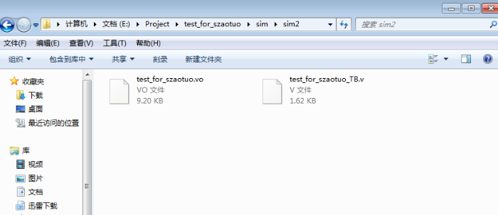 3.建立sim2的modelsim的工程,和上面的类似,但是注意:将vo文件和testbench文件拷贝到sim2文件夹,这一点和上面不同哦。