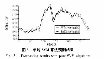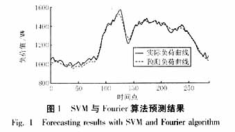 SVM算法对与预测负荷曲线较平滑的系统,能够取得较理想的效果。但是,对于惯性较小、随机波动性较强的中小型电网,其效果相对较差。改进的方法是,先采用Fourier算法将历史负荷曲线分解为平滑曲线和随机波动曲线两部分,只采用平滑部分作为SVM的历史训练数据,能够取得更好的效果。