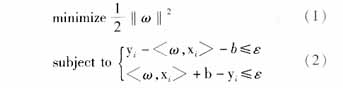 假设有一组训练数据,共有l个,其中第i个数据包含变量和与之相对应的变量xi∈Rn和与之相对应的变量yi∈R,SVM定义了一种机器(machine),用于确定x到y的映射关系x→f(X,a),a为可调参数,通过对已知数据的学习来确定它。在线性回归中,定义映射函数f(x)=