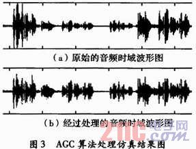 为了验证该算法的正确性和有效性,采用Matlab对该数字音频AGC算法进行仿真。仿真结果如图3所示。