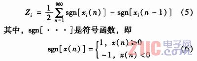 短时过零率是指每帧内信号通过零值的次数,对于数字音频信号实质上就是一帧信号采样点符号的变化次数,由于采样频率是固定的,因此短时过零率可以在一定程度上反映音频信号的频谱特征,用作一种音频信号频率的粗略估计。短时过零率Zi表示为