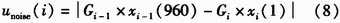 AGC处理中一个重要问题是,在音频分帧的交界处的样值点会因为增益因子Gi的突然改变而产生原本连续信号样值的突变,当分帧为20 ms时,AGC处理效果相当于产生50 Hz幅度不定的阶跃信号噪音。噪音信号Unoise的大小为