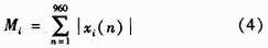 音频信号的振幅可以用峰值表示,即由一帧音频信号内的绝对值最大项来表示,用Pi代表第i帧数字音频信号xi(n)的帧内峰值,那么