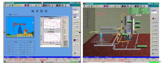 ECHO监控仿真子系统:该系统是整套油田自动化系统的基础,主要实现抽油井、自喷井、螺杆泵井、计量站、转油站等的参数采集与常规控制,操作员通过友好的人机界面可在远端实现生产现场数据的巡检和日常操作等所有功能,同时本系统还提供所有参数的异常报警,使操作员以最快的速度获得现场生产的异常信息而及时进行处理,避免事故的发生。智能抽油机控制器可实时采集井口功图数据,提供给工程师分析地下情况。仿真子系统的典型界面如下:
