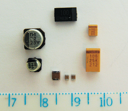 导电聚合物钽电容具有低ESR特性,成本高于陶瓷电容而且体积也略大,但对于不能忍受压电效应噪声的应用而言可能是唯一选择。不过,钽电容的漏电流要远远大于等值陶瓷电容,因此不适合一些低电流应用。