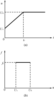 (a)电压、时间曲线(b)频率、电压曲线