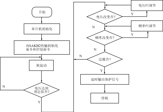 软件程序设计是整个逆变器控制的核心,它决定逆变器的输出特性,如电压、频率范围及稳定度、谐波含量、保护功能的完善,可靠性等。图4为本系统的程序流程图。