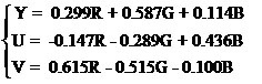 本系统中的FPGA模块的另一功能是将RGB信号转换为YUV信号,二者转换的公式为(RGB取值范围均为0-255):