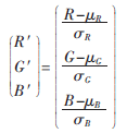 Transformed color SIFT在RGB空间模型中,光照的变化对RGB直方图稳定性产生影响。光强度的变化引起颜色不规则分布,致使直方图产生偏移。为了消除偏移,在RGB模型中对于每个通道颜色的分布减掉其颜色分布的均值μ,除以该通道下分布的标准差δ。定义后的空间模型如下: