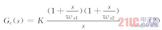 (1)幅频特性的低频段曲线平坦,欲消除闭环系统的稳态误差,补偿网络的设计应至少含有一个积分环节;(2)主极点wp由LC 输出滤波器产生,表现为一个双重极点,产生180°的滞后相移,系统相位裕量偏低。