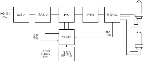 CFL小型荧光灯被设计为工作在要求全照度和可调光的,其镇流器充分显示了该ML4835镇流控制器IC的如下特性: