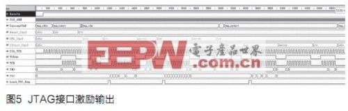 图5为各状态机个状态下接口输出波形,TCK、TMS、TDI时序和输出值满足JTAG扫描方式配置Virtex-4系列FPGA接口激励要求。