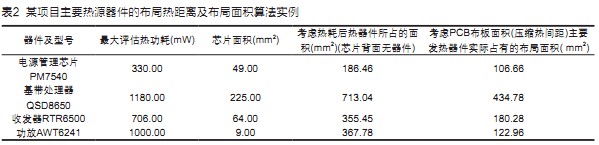 。表2计算了本项目热源器件的布局热距离及布局面积。