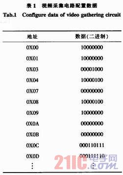 在FPGA内设计I2C总线控制器,配置为和视频解码器I2C接口时钟一致的接口总线。通过FPGA上电配置,达到对FPGA内的FIFO初始化,初始化数据为视频采集电路的配置数据,配置数据见表1。