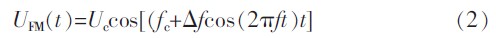 在连续波调制中,载波可表示为uc=Uc cosωct,调制信号为UΩ(t),调频波是瞬时频率的变化量与调制信号成正比,因此调频波的瞬时角频率除了载波角频率ωc外,还附加一项和调制信号成正比的部分,式中kf为比例系数,是单位调制信号强度引起的频率变化。△ωf(t)的最大值△ωf称为最大频偏,反映在频率上为f(t)=fc+△fcos(2πft),调频波的表达式: