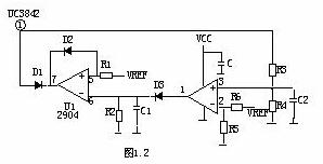 图A的工作原理是,当输出电压Uo升高,稳压管导通,光耦导通,Q2基极得电导通,由于Q2的导通Q1基极电压降低也导通,Vcc电压经R1、Q1、R2使Q2始终导通,UC3842③脚始终是高电平而停止工作。在图B中,UO升高U1③脚电压升高,①脚输出高电平,由于D1、R1的存在,U1①脚始终输出高电平Q1始终导通,UC3842①脚始终是低电平而停止工作。正反馈?