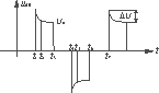 2)t2-t3时段 uAB=Uo,D12反偏截止。D1与D4导通,忽略D1与D4上的压降,UEF=Uo。以E为电压参考点,UF比UE电位低Uo,记作-Uo;由于UC=UEG=Uo+ΔUo,则UG比UE低Uo+ΔU,记作-(Uo+ΔU);这样UFG=UF-UG=ΔU。