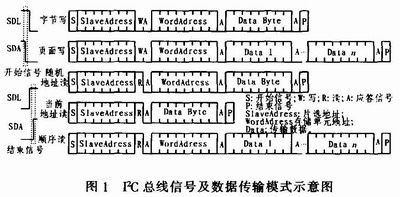 I2C总线各种信号及数据传输模式示意图如图1所示。