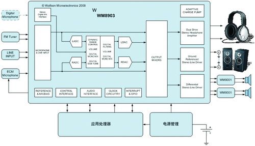 为此欧胜微电子(Wolfson Microelectronics)推出新一代超低功耗音频CODEC WM8905,使音频功能便携装置电池寿命大大降低,使音频回放时间延长高达40个小时。