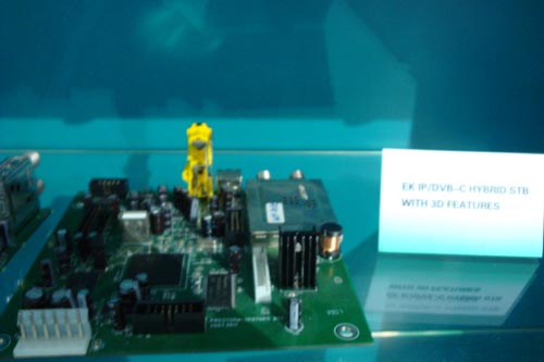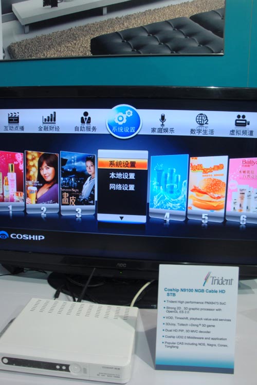 机顶盒的功能由于三网融合的发展而被无限放大,它也将成为未来家庭中不可缺少的数字娱乐设备,CCBN2011上,很多芯片厂商就展示了应用它们芯片的机顶盒,而机顶盒厂商也展示了它们多功能机顶盒。话不多说,以图为证: