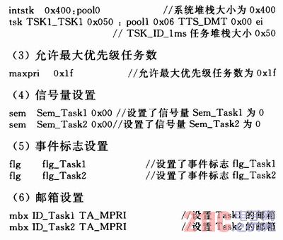 相应地,OSEKOS静态配置可以通过OS2EKOIL语言实现,用户在系统生成时静态制定任务的个数、需要的资源和系统服务。OSEKCOM为通信网络中的数据交换提供了标准的接口和协议。OSEKNM为监视网络的流量提供了一组标准的功能函数,以保证网络的安全性和可靠性。
