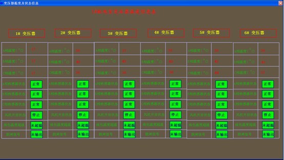 这样下来我们的系统就完成了,下图为1#配电室变压器温度信息及状态表。