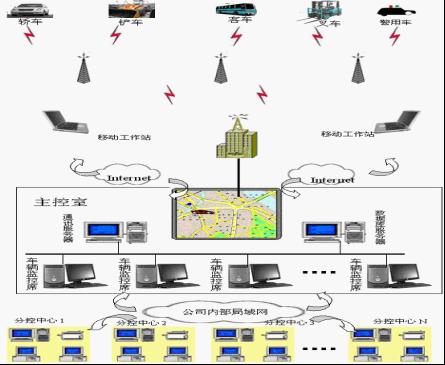 监控中心:服务器(计算机)、GPS车辆管理系统软件、全国地图