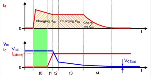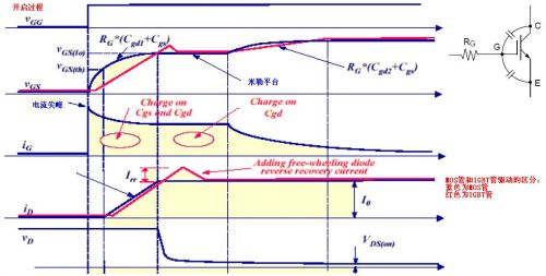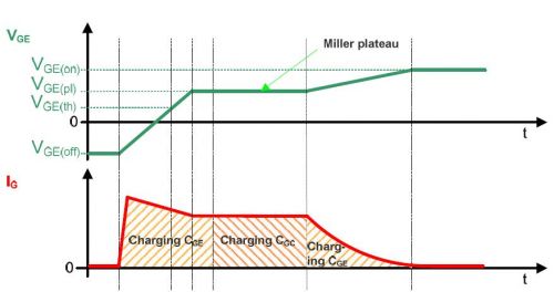 1.与MOSFET类似的开通过程,也是分为三段的充电时间